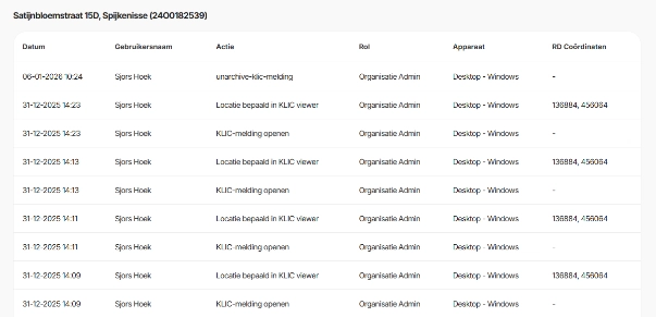 We lieten al zien wie wanneer welke KLIC-melding opende, maar slaan daar nu ook de locatie van de gebruiker bij op. Zo heb je een krachtig middel om aan een opdrachtgever of verzekeraar te bewijzen dat je de KLIC-melding daadwerkelijk op een bepaald moment op een bepaalde locatie hebt geopend.