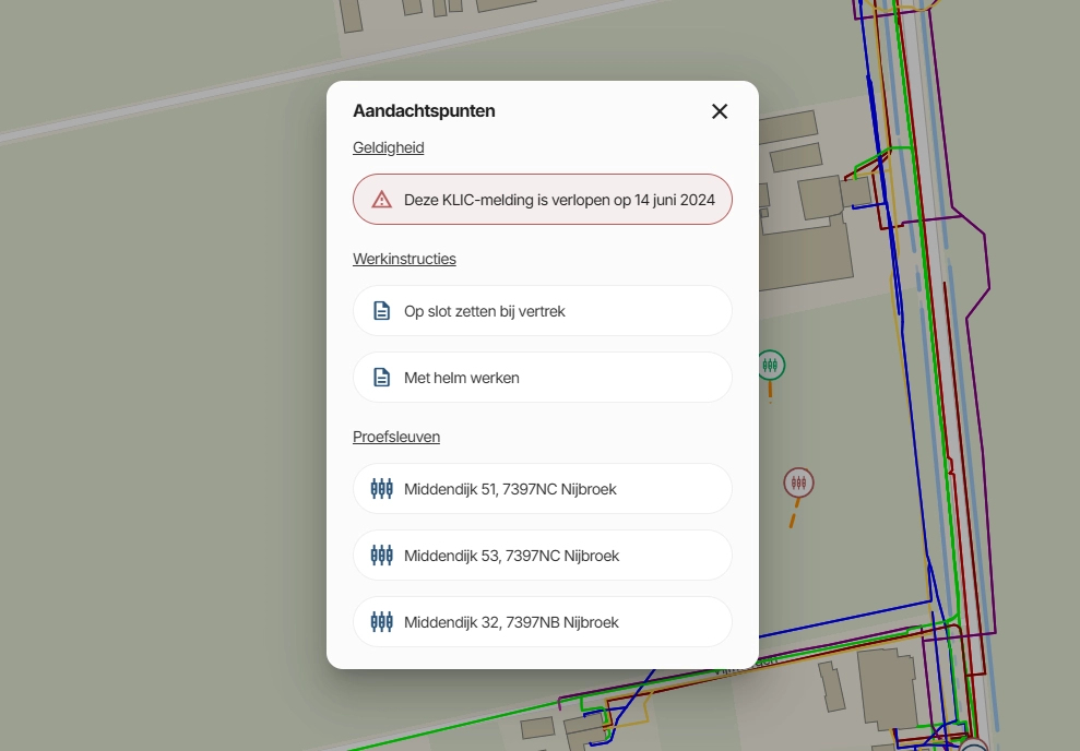 Verbeterde pop-up bij het openen van een KLIC-melding